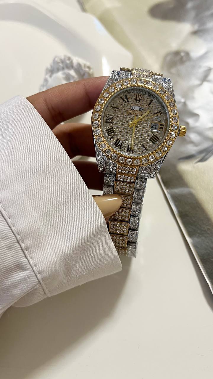 ساعه رولكس فضي ذهبي (زركون)شامل علبه